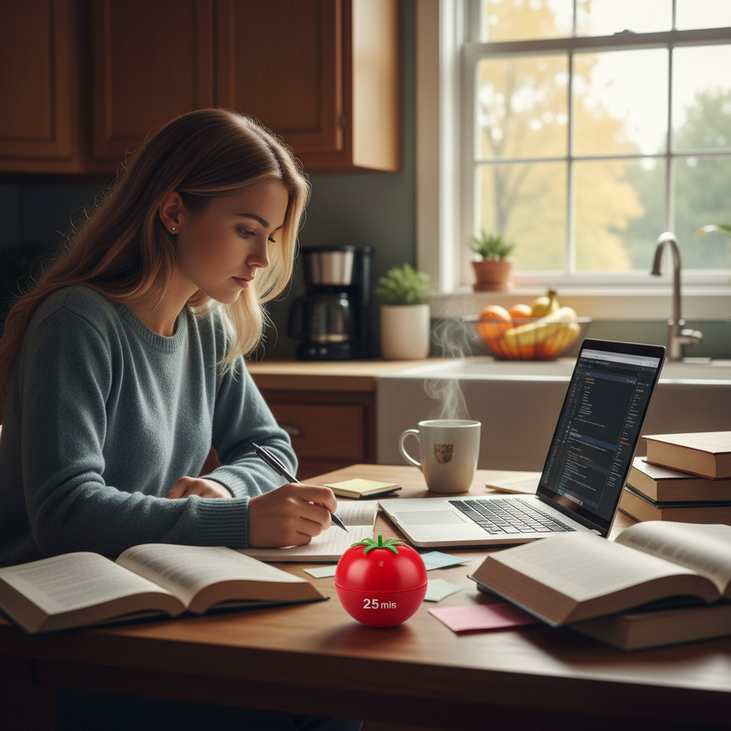 - Technika Pomodoro – ucz się w krótkich, intensywnych seriach z regularnymi przerwami.