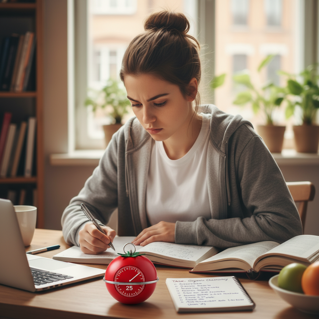 - Stosuj technikę pomodoro – ucz się w krótkich, intensywnych blokach po 25 minut.
